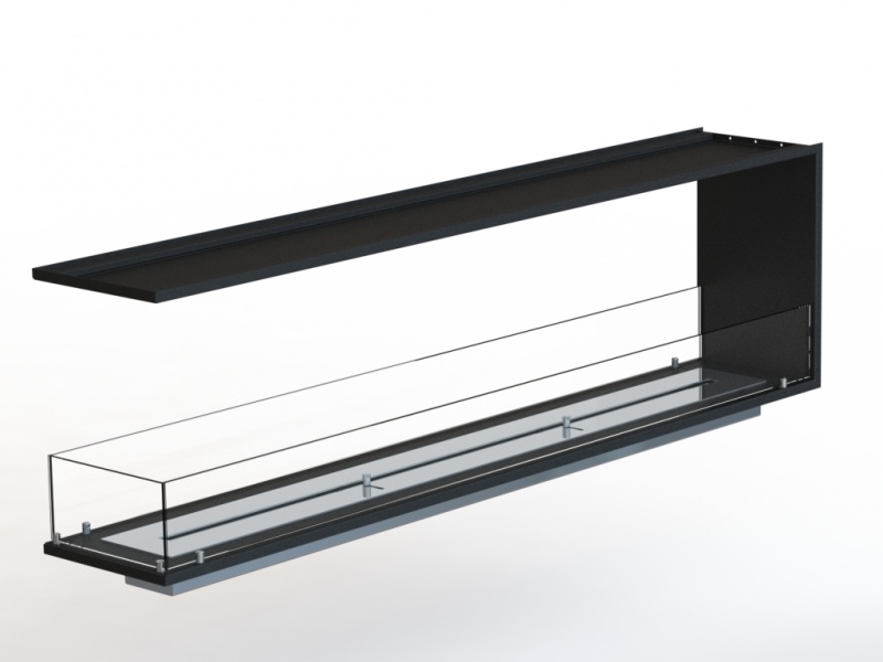 Торцевой биокамин изготовлен из термоустойчивой стали толщиной 1,5 мм и покрашен в черный цвет. Биокамин комплектуется защитным экраном с трех сторон из закаленного стела толщиной 6 мм и топливным блоком из нержавеющей шлифованной стали с возможностью регулировки высоты пламени. Длина линии огня 1500мм.