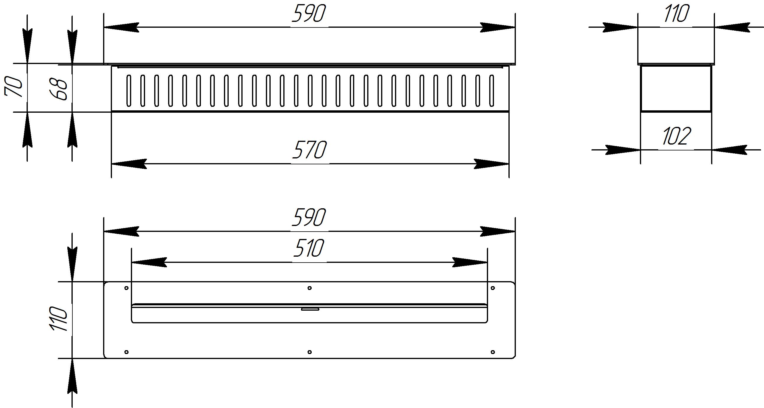 Длина, мм 590 Ширина, мм 110 Высота, мм 70